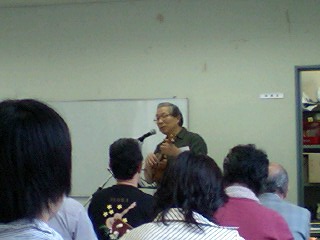 土曜、出稽古。 3連の最終講義と、音楽理論を中心に。 押さえ方を意識したセブンスの代理コードなど。 お昼おそば屋さんからはじまり、焼鳥屋さんまで。 飲んで、弾いて、飲んで。 特に焼鳥屋さんの二次会は濃かったのぅ。 ![]() でも、ほんま盛り上がって、ウクレレ弾きまくって 楽しい一日。 で、お約束の親指にマメが、またできました。 ![]() 日曜は、日本ウクレレ協会(NUA)の月例会。 約半年ぶりくらいの参加。 MATTさんのお顔を久しぶりに拝見し、なんとなく 心のふるさとに 帰ってきた気分。 のぶぞうさんや、久しぶりにお会いする方々。 ほんとに ええところじゃ。 でも、以前と持っているウクレレが違っている人もちらほら。 半年という時間は、ウクレレを買い増すには、 十分すぎる時間なのであろうか!? そして、懇親会。 月例会に参加したら、舞台度胸をつけるためにいつも 発表しているが、今回撃沈。 ![]() 先週は時間がなく土曜の出稽古以外ウクレレに触れれなかったものの、 手癖で一番覚えていそうな曲で、発表に望む。 ところが、緊張のあまり、いきなりオーバーペース。 MATTさんがベースでペースを導いてくれるも、途中から、 『あれ? 2番はどんな感じだったかな?』 と、危機感がつのりはじめ、途中でストップ。 うぅ、最後まで弾けなかったのは、初めて。 ヘコミンコ。 でも、2次会や3次会だと、比較的弾けるように。 力水(ビエール)の偉大さを再認識。 連チャンで体力的には疲れたけど、ほんとに久しぶりに ハジけた2日間だったのぅ。 ウクレレ仲間、最高 ![]()